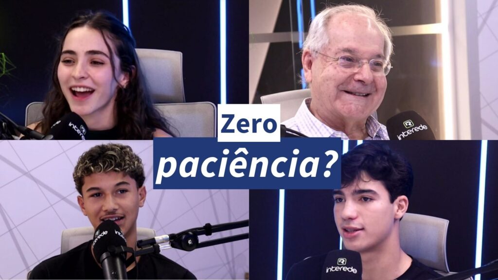 Os adolescentes Júlia Candiani, Elmo Patrus e Ian Soares Veiga conversam com o experiente Antônio Cabral sobre a paciência e a construção da vida com auxílio da Logosofia.